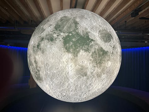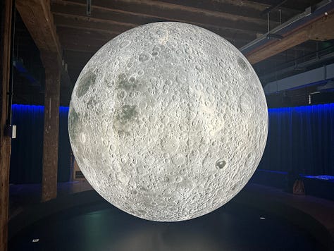 More on Luke Jerram’s touring moon installation here. You can visit the moon I saw—I’ll call it *my* moon—at the London Museum Docklands until March 2026.